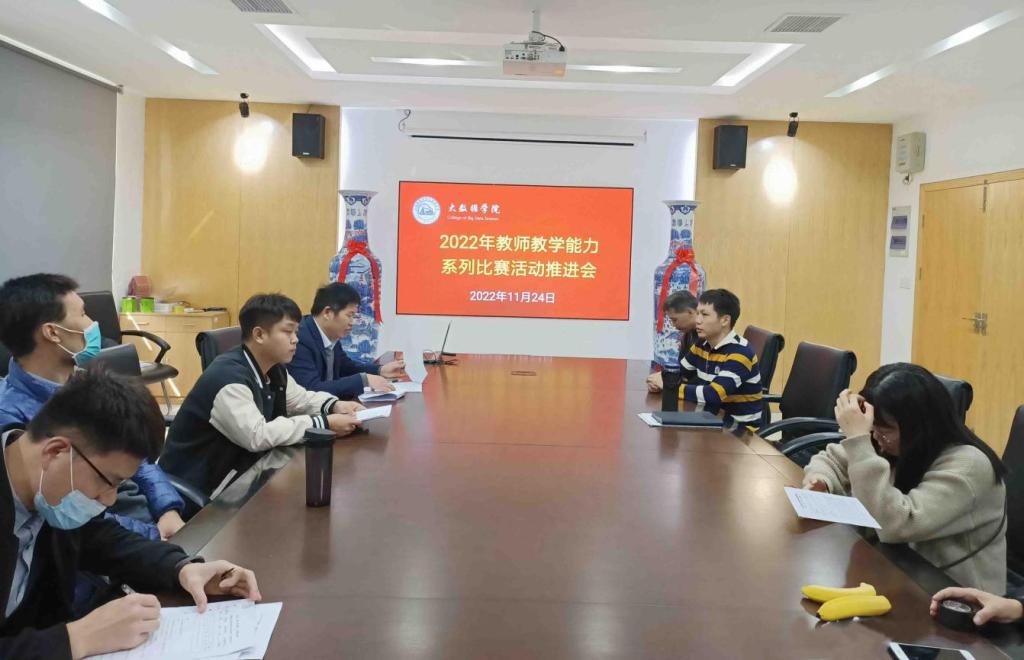 【pp电子游戏平台官网 讯】为切实做好2022年pp电子游戏平台官网教师教学能力系列比赛参赛工作,进一步深化教学改革,达到以赛促教、以赛促改的目的。2022年11月24日中午12:50,在学院会议室召开了pp电子游戏平台官网2022年教师教学能力系列比赛活动推进会,参加会议的人员有赵德福副院长、教研室主任夏贤铃、教研室副主任吴琴琴,以及报名参赛的相关老师,会议由赵德福副院长主持。