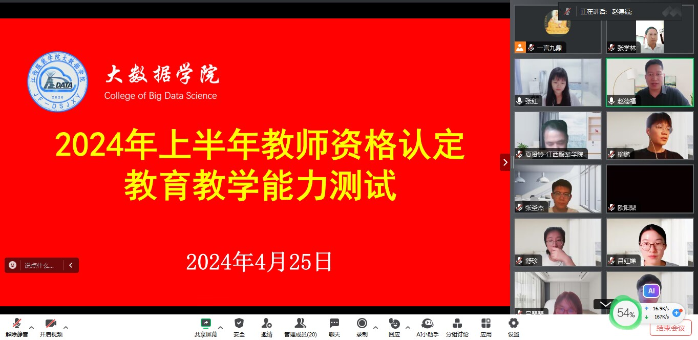 【pp电子游戏平台官网讯】随着高等教育改革的深入推进,教师的教学能力成为衡量其职业素养的重要指标之一。本次资格认定工作旨在严格把关教师的教育教学水平,确保教学质量,促进学校教育教学的发展。2024年4月25日,我院在线会议成功举办一场别开生面的教师资格认定试讲。学院赵德福副院长、张学林副院长、学院督导以及各教研室主任共同参与了此次试讲的评审工作,他们通过屏幕,远程观看了14位教师们的精彩试讲,对每一位参评者的教学技能进行了细致评估。