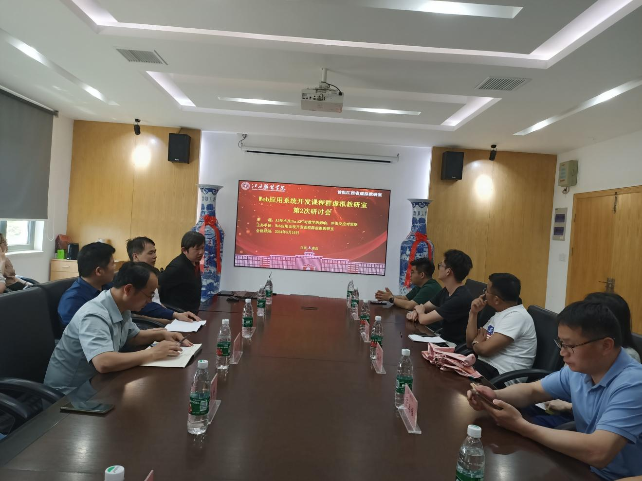 【pp电子游戏平台官网讯】2024年5月16日下午,江西省“Web应用系统开发课程群虚拟教研室”第二次建设发展研讨会在pp电子游戏平台官网会议室顺利召开,本次会议主题“AI技术及ChatGPT对教学的影响、冲击及应对策略”,会议由Web应用系统开发课程群虚拟教研室主办,版权所有 pp电子·模拟器(试玩游戏)官方网站、pp电子游戏平台官网大数据与信息产业学院和江西省高水平本科教学团队“面向纺织服装产业的软件工程教学团队”联合承办,来自pp电子游戏平台官网、江西师范大学、南昌大学、南昌大学科技学院、南昌工学院、江西思诚科技有限公司和云科未来科技有限公司等高校和企业的特邀嘉宾以及企业的相关任课教师、pp电子游戏平台官网的骨干教师近50人参加此次会议,会议由版权所有 pp电子·模拟器(试玩游戏)官方网站副院长赵德福主持。