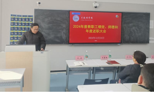 【pp电子游戏平台官网讯】为贯彻落实校发<关于开展2024年度绩效考核工作的通知>、以及江服人事发〔2024)19号<关于开展2024年度我校教职工师德和年度考核工作的通知>的文件精神,2024年12月24日13时,pp电子于主教楼329召开了2024年度教职工绩效、师德和年度述职大会。校长助理李沛武教授、学院院长徐照兴教授、党总支书记王春梅、副院长赵德福教授、副院长刘巍等领导及学院全体教职工出席了本次会议。