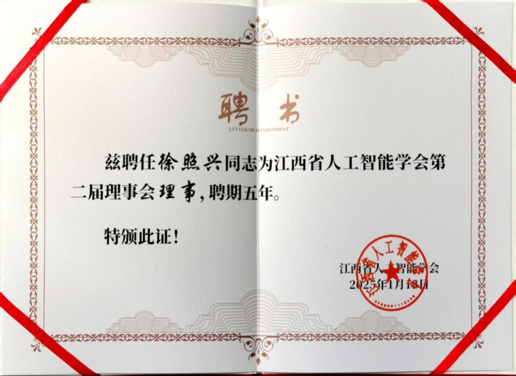 我校pp电子游戏平台官网院长徐照兴教授受聘为江西省人工智能学会第二届理事会理事。