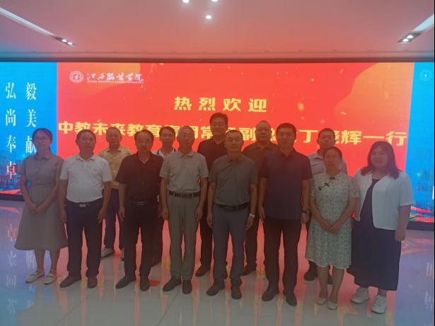 中教未来教育集团党支部书记兼常务副总裁丁总发表了精彩致辞。丁总对学院的热情招待表示感谢,并对学校给予的高度信任和支持表示了衷心感谢。丁总表示参观完校园感受很震撼,从内心感觉学校的理事长不仅是一位学者,更是一位有着深厚教育情怀的教育家,正是这份对教育事业的无限热爱与执着追求,让他能够引领学校走向辉煌,成就今日的成绩。