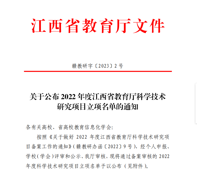 喜报||pp电子四位教师申报2022年度江西省教育厅科学技术研究项目获批立项
