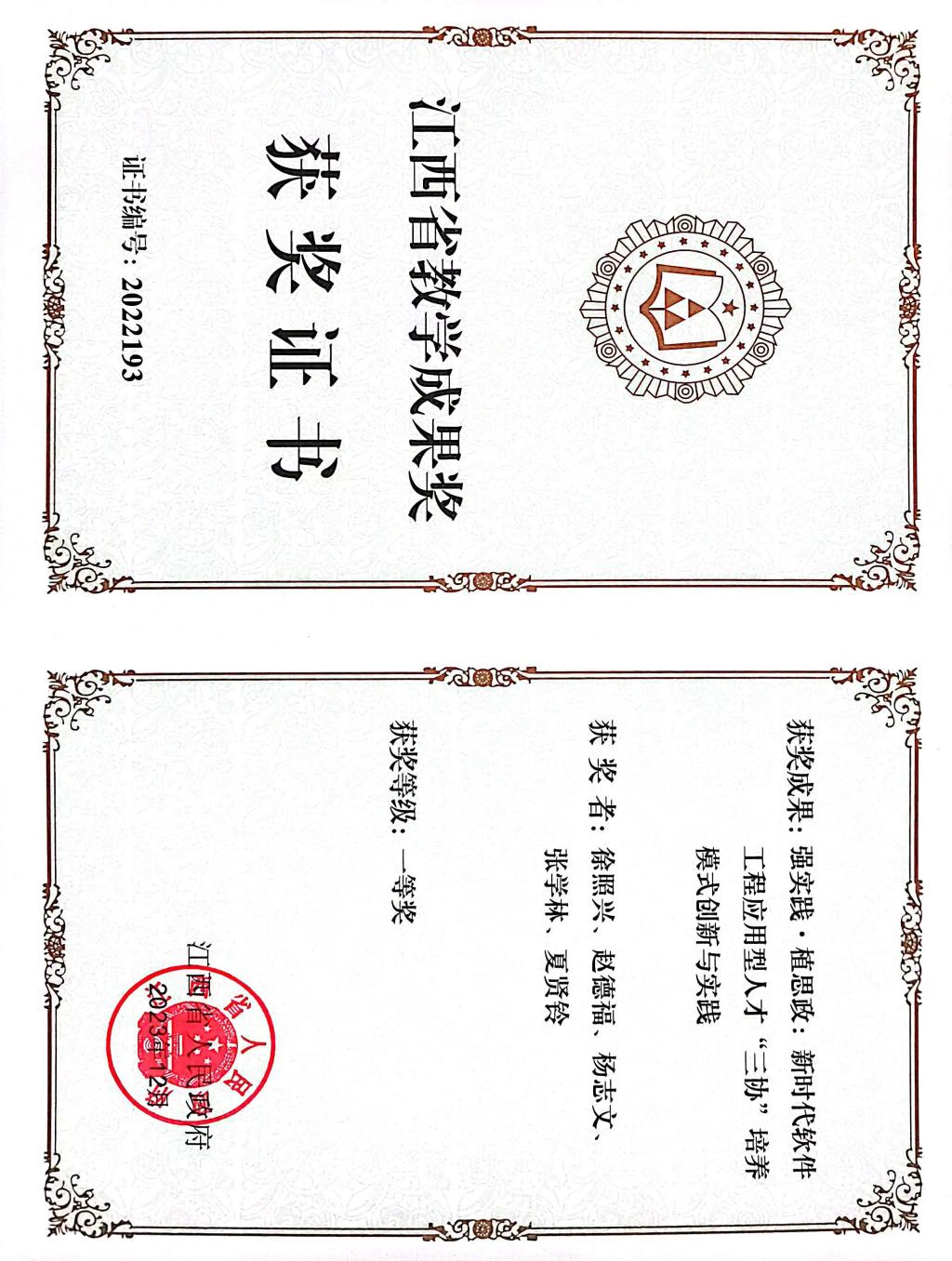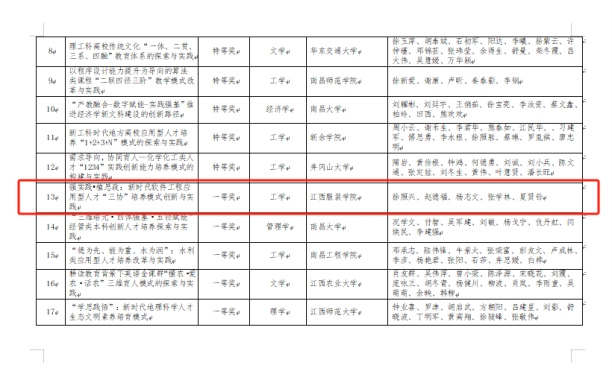 【pp电子游戏平台官网讯】2023年10月26日,江西省教育厅公示了2022年江西省教学成果奖拟获奖项目名单,pp电子教师徐照兴教授主持的《强实践•植思政:新时代软件工程应用型人才“三协”培养模式创新与实践》教学成果获评高等教育类一等奖。