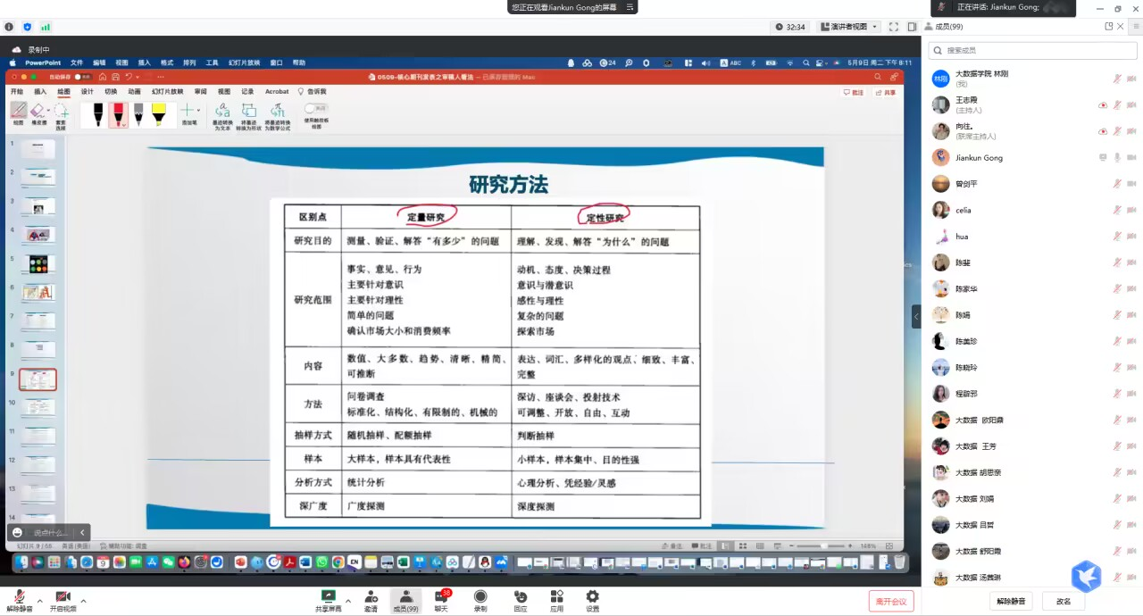 巩主编的报告分为审稿人眼中好文章的标准、期刊给予审稿人的选项、如何写好文章和期刊内部运作规则四个部分。首先,巩主编从审稿人的角度,详细阐述了一份好文章应当在原创性、文献综述、研究方法、研究结果和社会贡献五个方面符合基本要求,尤其强调了文章创新性的重要性。巩主编还详细介绍了研究方法可分为定量研究方法和定性研究方法。接着,巩主编着重介绍了审稿的一般流程,说明了稿件最终被接受的概率仅12%,并且稿件从投刊到出版需要经过较长的时间。