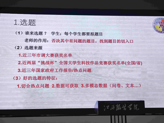 王博士针对“正大杯”选题、研究报告的撰写及视频录制及参赛分别做了详细的阐述。选题方面,他强调选题来源可以是近三年市调大赛获奖题目、近两届“挑战杯”全国大学生科技作品竞赛获奖选题(全国/省)或者是近三年国家政府工作报告/热点问题。他认为一个好的选题的特征:一是切合热点问题,二是数据可获取,三是多模态数据,如问卷数据、文本数据等。
