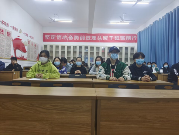 观看结束后,王前坤老师领学了视频中习近平总书记参加党的二十大广西代表团讨论时的重要讲话精神,王前坤老师说道:我们一定要牢记习近平总书记的嘱托,踔厉奋发,勇毅向前,以铸牢中华民族共同体意识为主线,以党的二十大精神为指引,推进新时代党的民族工作高质量发展。牢牢把握习近平新时代中国特色社会主义思想的世界观和方法论,始终保持良好的精神状态,奋力谱写全面建设社会主义现代化国家新篇章。
