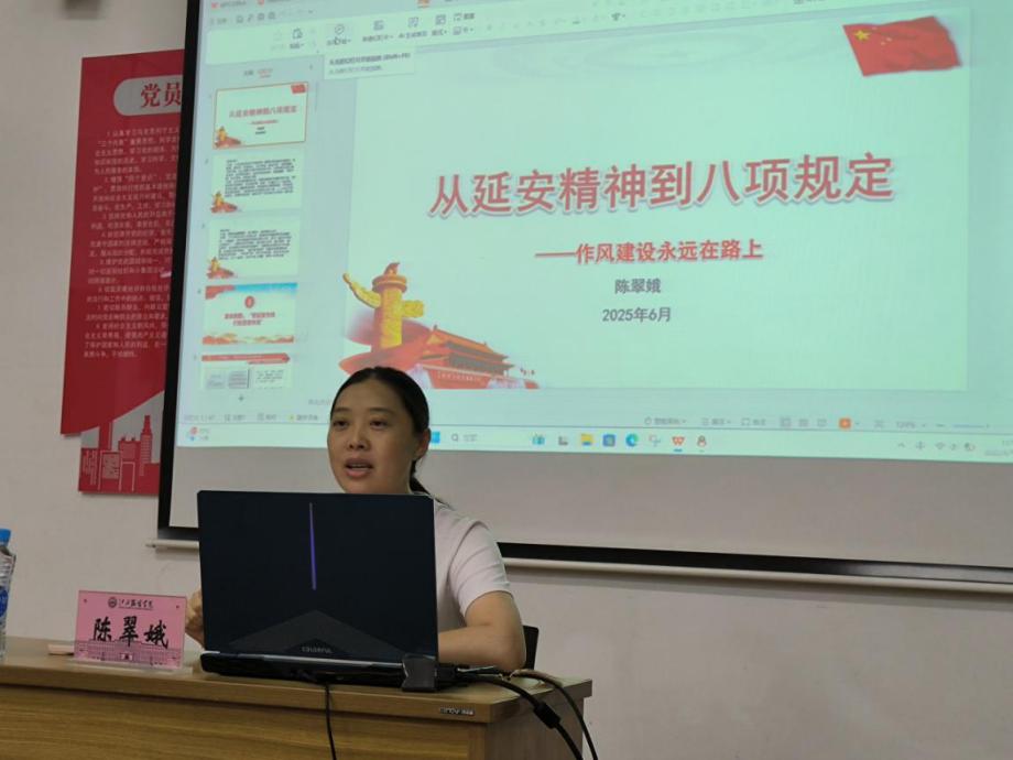 【pp电子游戏平台官网讯】为强化党性意识,坚定入党信念,端正入党动机,6月15日,pp电子游戏平台官网于党员活动室开展以中央八项规定为内容的党课培训,由校党委委员、组织部部长陈翠娥主讲,39期、40期入党积极分子参与学习。