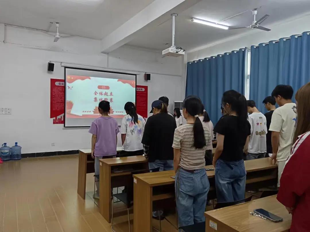活动伊始,随着主持人的宣布声,庄重而肃穆的气氛瞬间笼罩了整个教室。全体同学起立,齐声高唱《光荣啊,中国共青团》,以此来表达对革命先烈们的崇高敬意。
