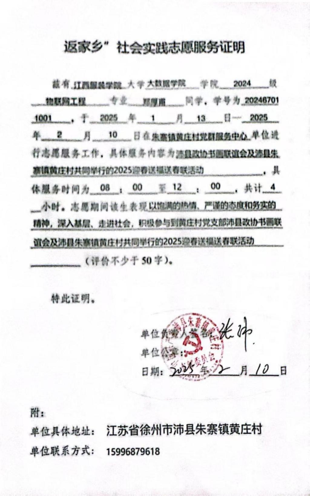 为了更有效地服务家乡,郑厚甫积极投身于多项丰富多彩的社会实践活动。在乡村教育支持活动中,他根据孩子们的学习进度和薄弱环节,制定个性化辅导方案,耐心讲解知识要点,帮助孩子们解决寒假作业中的难题,让孩子们的寒假时光充实而有意义。在助力乡村文化建设方面,他充分发挥自身创意与组织能力,积极参与春节迎春活动的策划。在送春联活动中,他邀请书法爱好者现场挥毫泼墨,一幅幅饱含新春祝福与美好寓意的春联在村民手中传递,为节日增添了浓厚的文化氛围。同时,他精心准备了各类生活物资和暖心礼品,与志愿者们一同走访慰问孤寡老人、残障人士等困难群体,为他们送去冬日里的温暖与关怀。