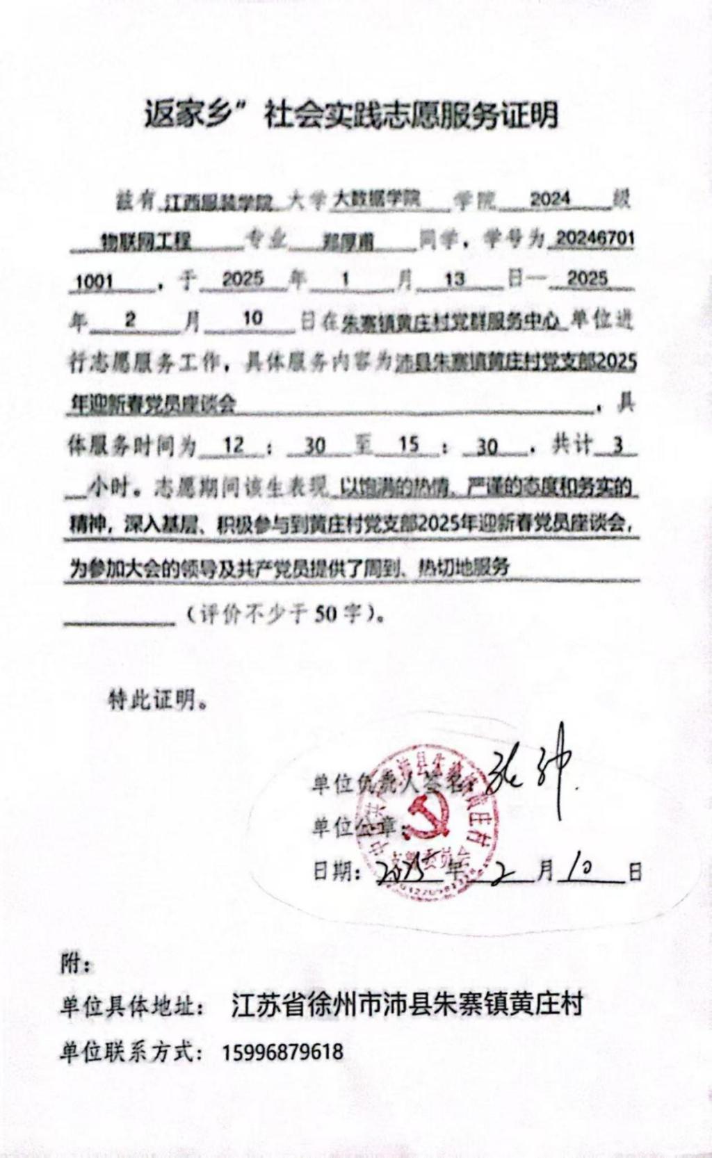 实践地点:江苏省徐州市沛县朱寨镇黄庄村党群服务中心