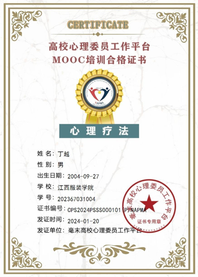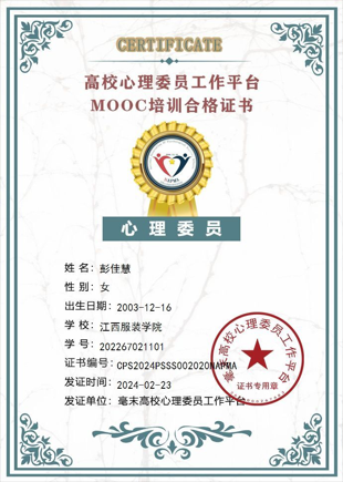 【pp电子游戏平台官网讯】pp电子深入贯彻落实党的教育方针及习近平总书记关于学生心理健康工作的重要指示批示精神。为推进pp电子心理育人工作的科学化、专业化,提升pp电子心理工作站及其他学生骨干的心理辅导能力和朋辈互助能力,培养和建设一支专业性强、责任心重的心理委员工作队伍,pp电子游戏平台官网组织了第一期骨干成员线上学习考取心理证书活动。