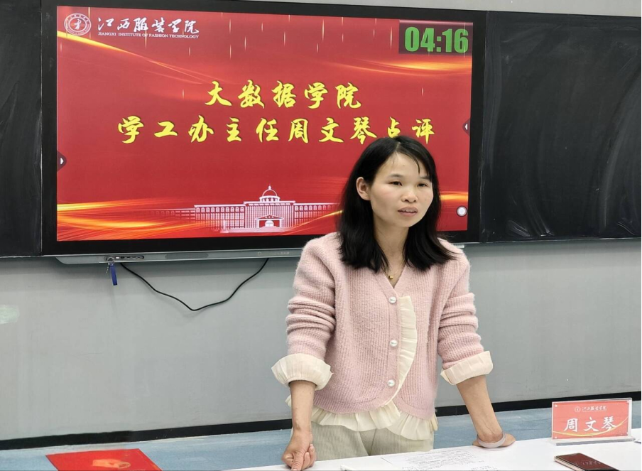 比赛结尾由周文琴副主任做总结发言,她表示此次主题班会演讲比赛不仅锻炼了学生们的口才与表达能力,更促进了同学们之间的交流与沟通,激发了他们对大数据领域的兴趣与热情。同时,比赛也为学院未来举办更多类似活动奠定了良好基础。