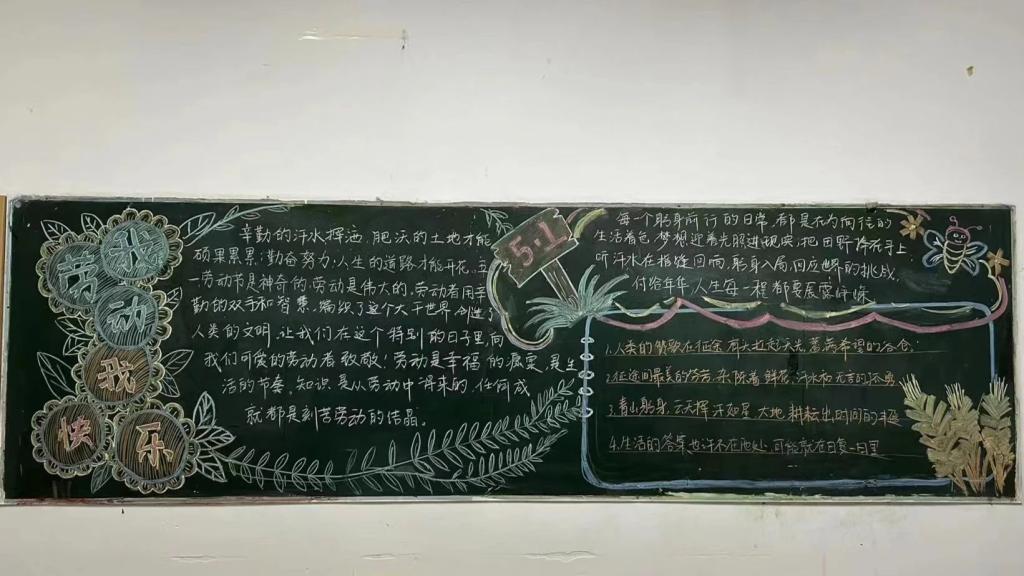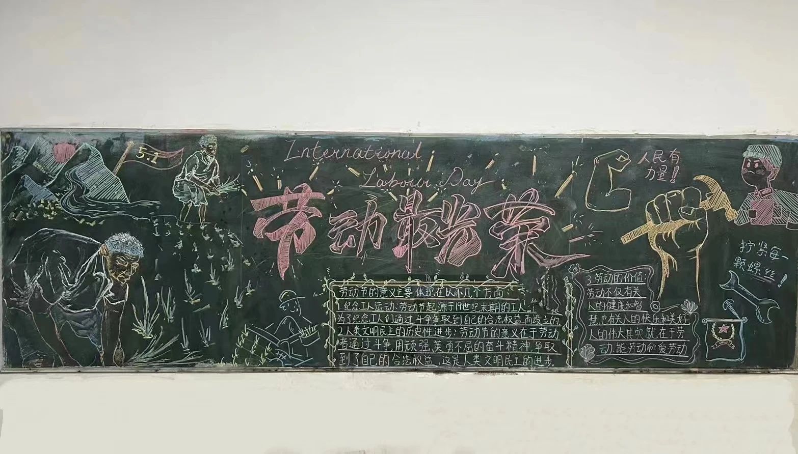 为了庆祝即将到来的劳动节,弘扬劳动精神,通过图文并茂的形式向群众宣传知识,提高人们的文化修养和思想素质,激发大家的创造力和团队协作精神,版权所有 pp电子·模拟器(试玩游戏)官方网站于2024年4月24日至28日于主教学楼举办一场以“劳动最光荣”的黑板报活动。鼓励大家通过创意黑板报的形式,展现对劳动的理解和赞美。