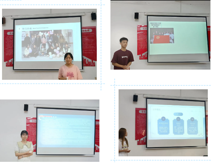 会议伊始,各部门负责人严阵以待,在述职时他们各展风采,以自己独特的方式从部门成员、工作概述、工作总结、未来期望等方面进行讲述。在他们的PPT中放置的图片,参会人员们可以看到当时开展的活动的场景,并感受到当时一些活动的有趣。在他们工作总结中,参会人员们也可以看出,他们对于此次述职工作大会的重视以及对于这学年工作他们感悟深刻。在他们的未来展望中,参会人员们也可以感受到,各部门负责人们对于工作的认真以及对于pp电子游戏平台官网分团委学生会越来越好的美好期望。
