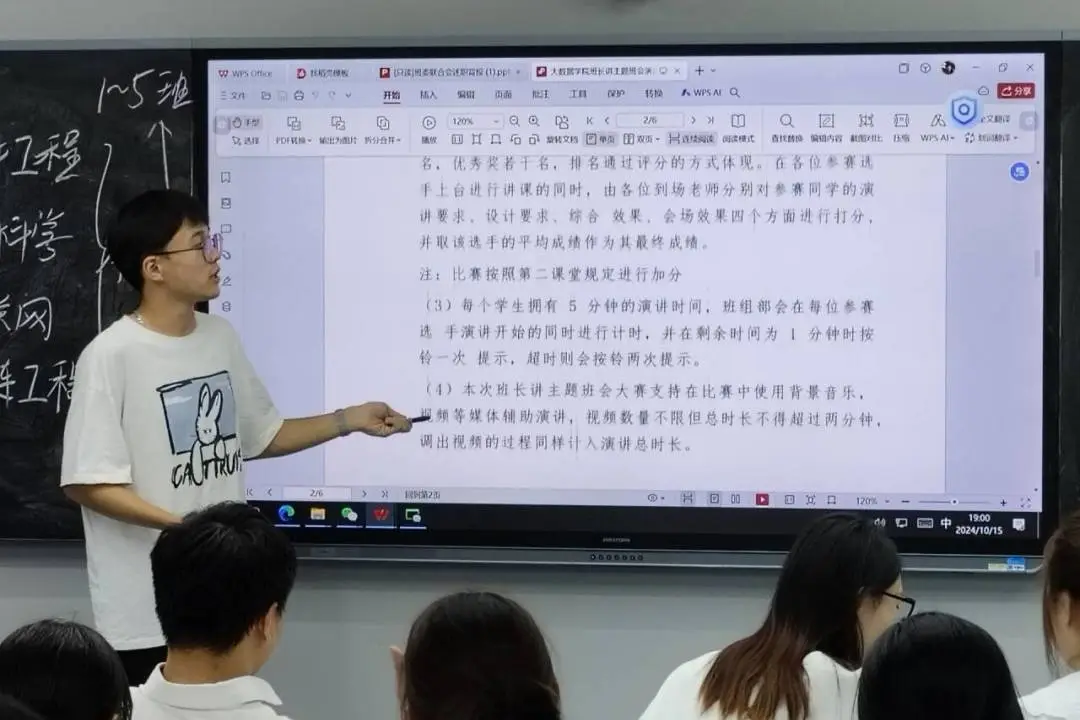 【pp电子游戏平台官网讯】为进一步发挥班长典型引领示范作用,切实加强班集体建设,提高班级学生素养。pp电子游戏平台官网班委联合会于2024年10月15日19时在主教楼330举办了2024年秋季学期“班长讲主题班会课”竞赛培训活动。本次培训特邀pp电子游戏平台官网23数据科学本科3班刘丰盈、服装工程学院23服教本科1班班长缪亚轩作主题班会示范课分享。本次培训由会长王洋主持。