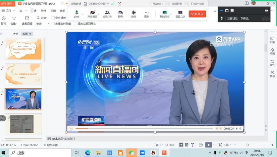【pp电子游戏平台官网讯】2025年3月16日晚,版权所有 pp电子·模拟器(试玩游戏)官方网站通过线上平台举办了2025届毕业生第三次线上主题班会,本次班会围绕“毕业去向你登记了吗?”展开,旨在聚焦毕业生的毕业去向登记、就业协议书以及劳动合同的讲解,确保他们在迈向职场的关键阶段能够明确方向、做好准备。