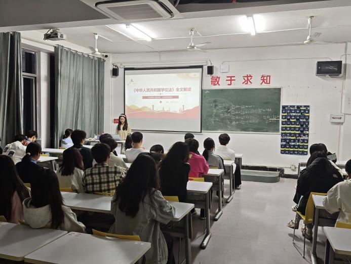 在大一的“学习贯彻《中华人民共和国学位法》,学风建设育栋梁”主题班会上,同学们深入学习了《中华人民共和国学位法》的制定背景、过程和重点内容。从1980年《中华人民共和国学位条例》到2024年《中华人民共和国学位法》的出台,同学们深刻理解到学位制度的不断完善对个人发展和国家人才培养的重要意义。在讲解获得学位授予资格的条件时,主讲人详细解读了思想道德、学业水平和专业能力等方面的要求,让同学们明确了努力方向。同时,通过分析学术不端、非法获取入学资格等反面案例,同学们更加坚定了严守学术诚信、勤奋学习的决心。