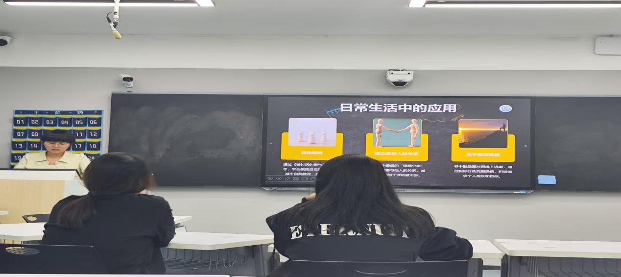 王佳青在分享书籍之前表达自己的性格内向,其次引出自己带来的书籍《被讨厌的勇气》,她表示《被讨厌的勇气》是一本极具启发性的佳作,以哲学对话的形式展开。它打破常规认知,提出“课题分离”这一独特观点,告诉我们要明确区分自己与他人的课题,不为他人期待所累,专注自身生活。书中的“目的论”也别具一格,指出我们当下的行为并非由过去经历决定,而是为达成某种目的。阅读此书,能让我们重新审视自我与人际关系,获得摆脱束缚、勇敢生活的力量,在面对生活困境时,拥有全新视角与应对勇气。