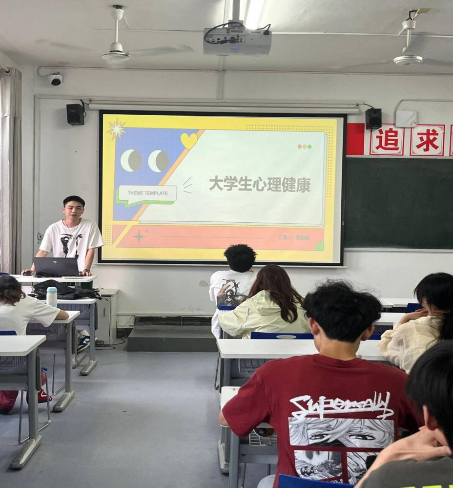 在讲解常见心理问题及成因时,易振楠同学围绕“压力与焦虑”“抑郁情绪”“人际关系困扰”等板块展开。他通过PPT图示和真实案例相结合的方式,深入探讨了学业压力、就业焦虑、家庭环境以及个人性格等因素对心理健康的潜在影响。特别提到,内向敏感的性格、自我认知偏差以及负面生活经历,都可能成为心理问题的诱因,提醒学生需正视问题根源,及时寻求帮助。
