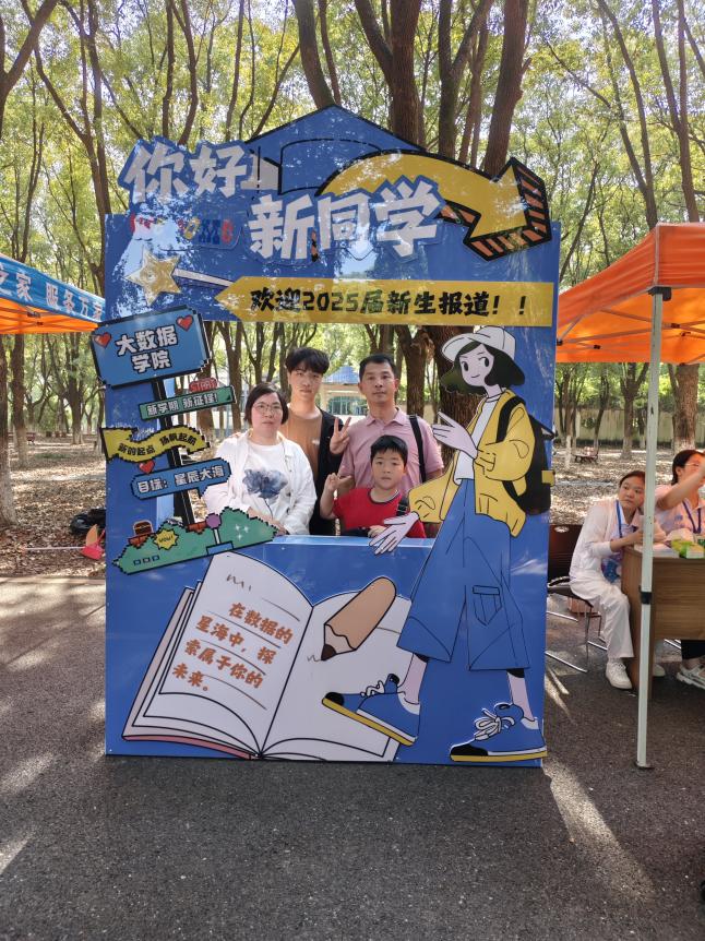 除了温馨的报到流程与特别的“时光信箱”,现场精心设置的迎新打卡点也同样人气十足。印有“你好!新同学”字样的背景板前,新生们或是挽着父母的手臂记录亲子时刻,或是与刚认识的室友并肩比心,用相机定格下踏入校园的第一份喜悦。