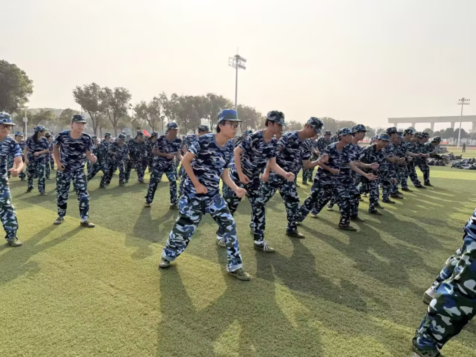 训练过程中,新生们展现出高度的学习积极性。新生谭玉梅表示,教官的耐心指导让她逐步掌握了军体拳的动作要领,从初期的生疏到最终能够完整流畅完成动作,切实体会到成就感与获得感;新生沈梦涵则在训练中收获了成长与反思,她谈到,上午营内会操时所在班级因表现不佳导致成绩落后,这让她坚定了“以差距为动力”的决心,下午军体拳训练中她专注揣摩技巧,即便手臂酸痛仍坚持练习,最终实现动作连贯规范,“军训不仅是体能的考验,更是意志的磨砺,唯有拼搏才能进步”。