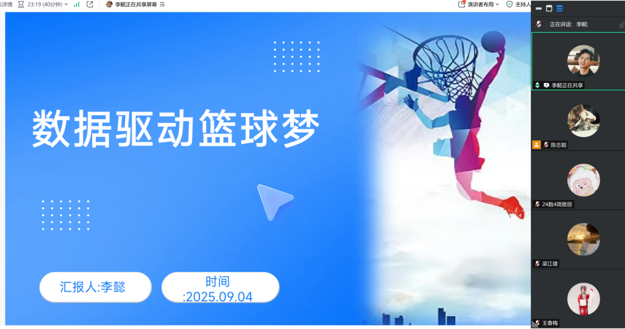 在比赛的个人展示环节,选手们结合专业背景与职业愿景,阐述未来职业发展的目标与路径。李懿同学聚焦篮球领域,结合数据科学知识,规划在篮球教练领域的发展,从逐梦球场到课程技能提升,再到一线执教等方面,展现出对篮球事业的热爱与专业融合的思考。