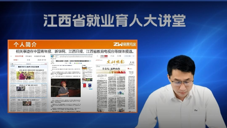 本期就业育人大讲堂特邀教育部首届“高校毕业生基层就业卓越奖”获得者、崇义章源钨业股份有限公司大余石雷钨矿矿长邱金铭作专题授课。本次主讲内容围绕《扎根基层,矢志矿业报国》展开。