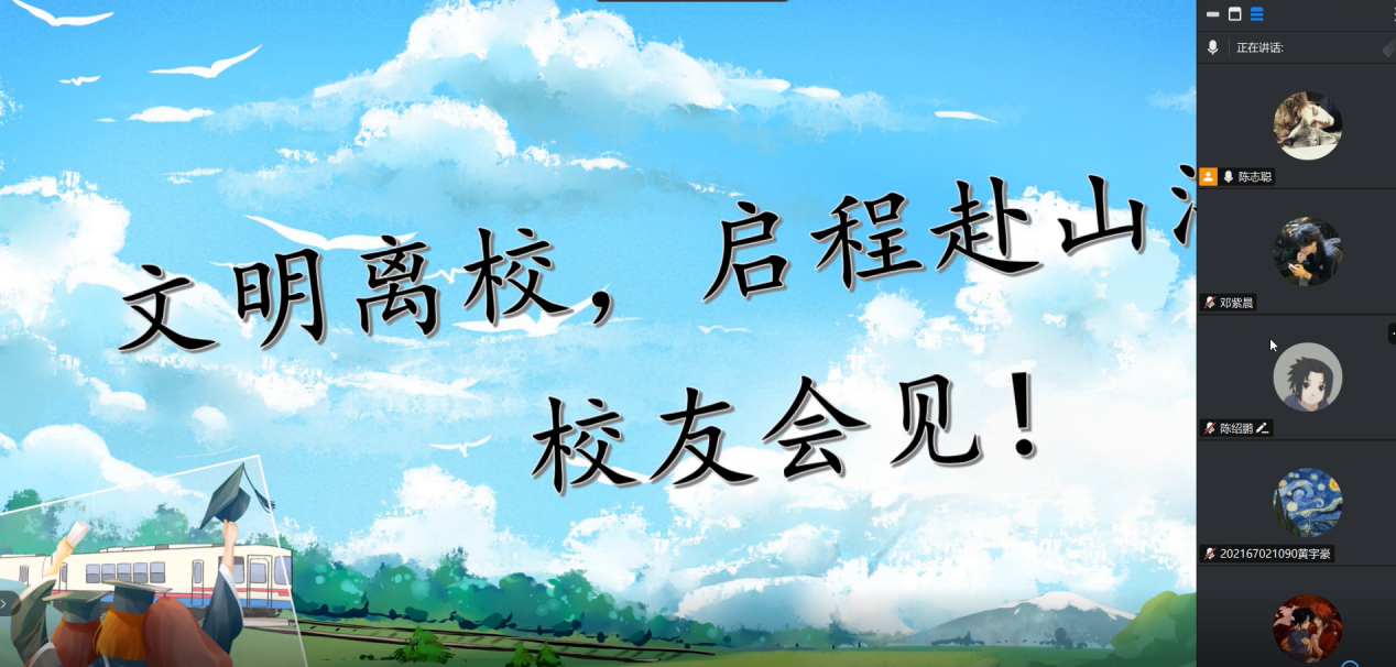 【pp电子游戏平台官网讯】2025年5月25日晚,版权所有 pp电子·模拟器(试玩游戏)官方网站以线上形式举办了2025届毕业生第八次线上主题班会。本次班会的主题为“文明离校,启程赴山海,校友会见!”,聚焦毕业生离校关键事项,为毕业生顺利开启人生新旅程筑牢基础,在毕业季为同学们送上温暖关怀与殷切期望。